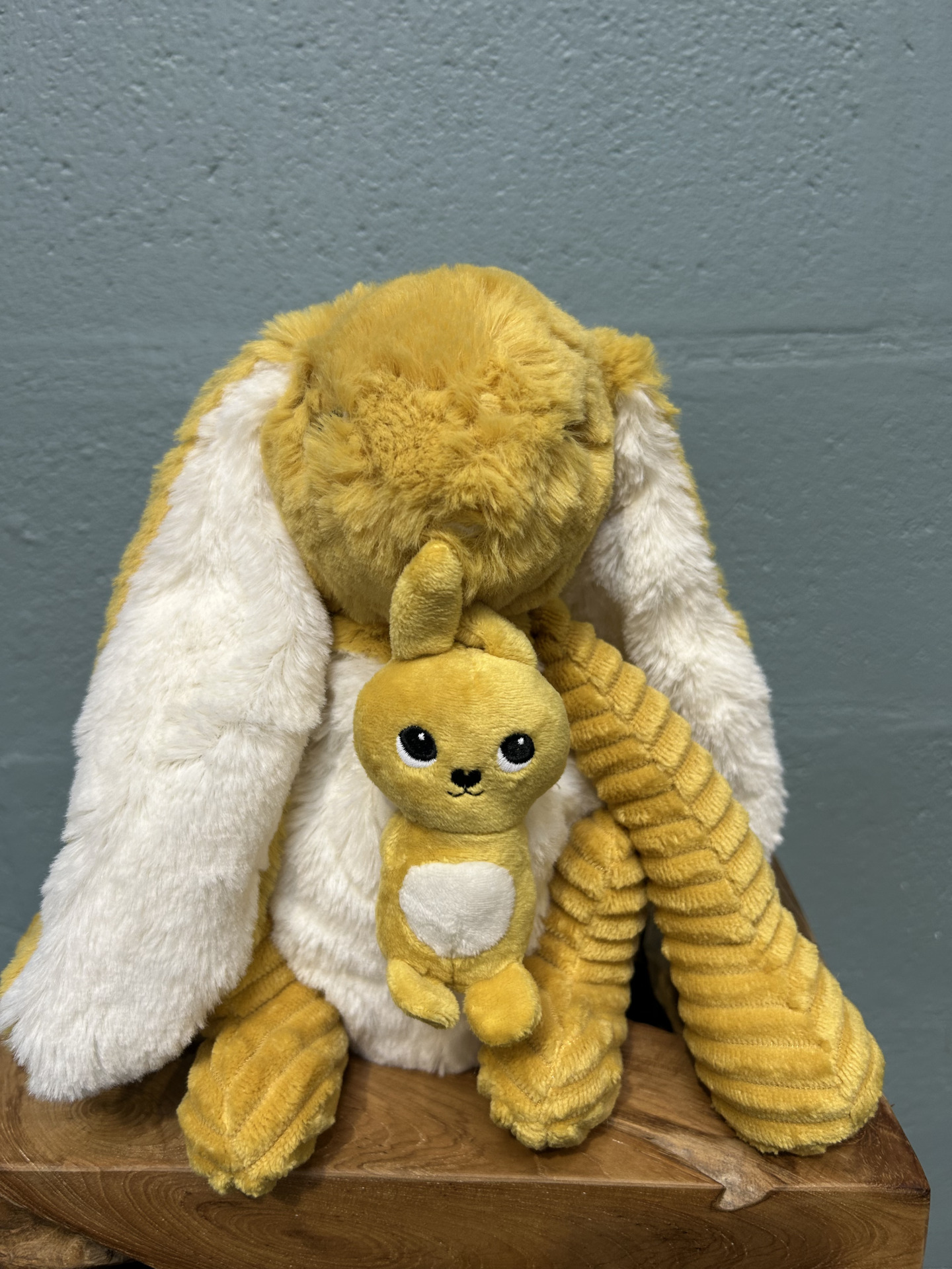 Peluche Toudou le lapin (jaune) – maman et son bébé